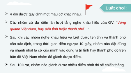 và nhanh nhất lá cờ của mình vào đúng vị trí tỉnh hay thành phố đó trên