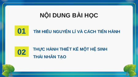 THIẾT KẾ MỘT HỆ SINH THÁI NHÂN TẠO NỘI DUNG BÀI HỌC
