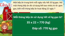 Mỗi tháng bếp ăn sử dụng hết số kg gạo là? 35 x 22 = 770 (kg)