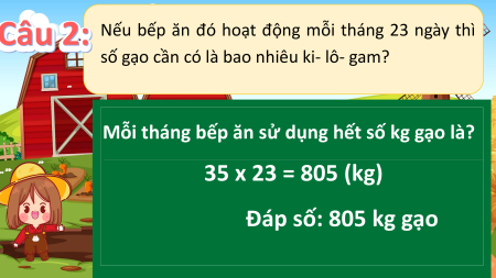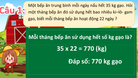 Câu 1: một tháng bếp ăn đó sử dụng hết bao nhiêu ki–lô- gam
