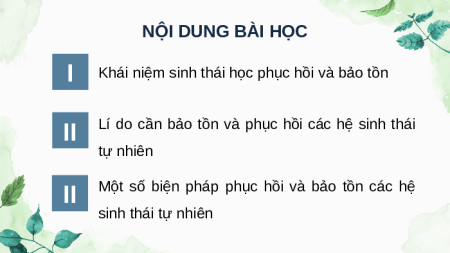 THÁI HỌC PHỤC HỒI, BẢO TỒN VÀ PHÁT TRIỂN BỀN VỮNG BÀI 33: SINH THÁI HỌC PHỤC HỒI VÀ BẢO TỒN ĐA DẠNG SINH VẬT