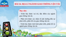 BÀI 34. ĐỊA LÍ NGÀNH GIAO THÔNG VẬN TẢI