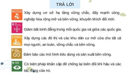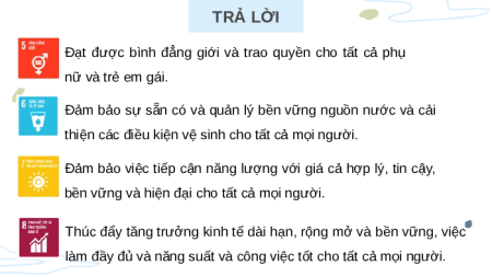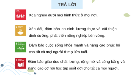 • Em hiểu gì về các mục tiêu phát triển bền vững đó? TRẢ LỜI