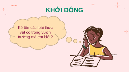 BUỔI HỌC NGÀY HÔM NAY! KHỞI ĐỘNG Kể tên các loài thực vật có trong vườn trường mà em biết? BÀI 34: THỰC VẬT