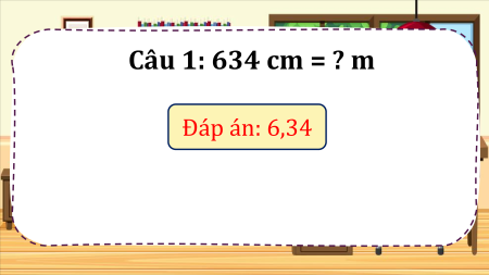 tương ứng với đáp án đúng nhé! Câu 1: 634 cm = ? m Đáp án: 6,34