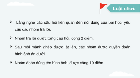 CÁC EM ĐẾN VỚI BÀI HỌC MỚI! --- TRÒ CHƠI --- LẬT MẢNH GHÉP Luật chơi: