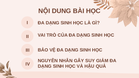tại sinh vật sống không? BÀI 38: ĐA DẠNG SINH HỌC NỘI DUNG BÀI HỌC I