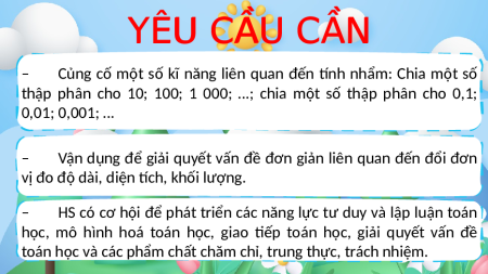 thập phân cho 10; 100; 1 000; …; chia một số thập phân cho 0,1; 0,01; 0,001; … –