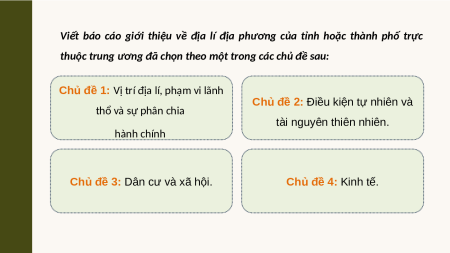 TÌM HIỂU ĐỊA LÍ ĐỊA PHƯƠNG Nhiệm vụ: