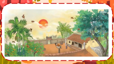 giả về cảnh đàn chim sẻ đón chào ngày mới và cảnh mặt trời