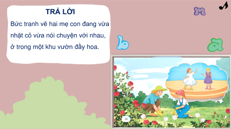 QUAN SÁT TRANH VÀ TRẢ LỜI CÂU HỎI Bức tranh vẽ những ai? Họ đang làm gì? Khung cảnh đó ở đâu?