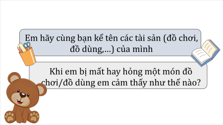 Em hãy cùng bạn kể tên các tài sản (đồ chơi, đồ dùng,…) của mình