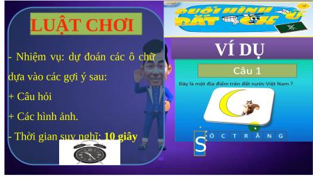 - Nhiệm vụ: dự đoán các ô chữ dựa vào các gợi ý sau: + Câu hỏi + Các hình ảnh.