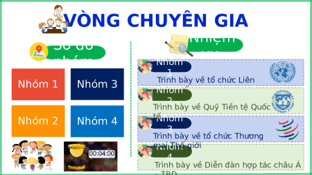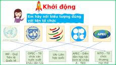 Em hãy nối biểu tượng đúng với tên tổ chức IMF - Quỹ OPEC – Tổ APEC - Diễn UN- Liên WTO – Tổ Tiền tệ chức các đàn hợp tác hợp quốc chức Quốc tế nước xuất kinh tế châu thương khẩu dần lửa Á - TBD mại thế giới Bài 4:
