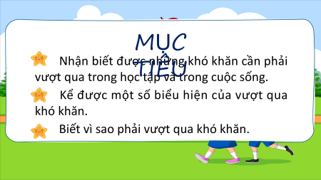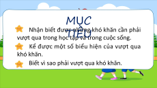 – Nhận biết được những khó khăn cần phải vượt qua trong học tậ T pI và Ê tr Uong cuộc sống. –