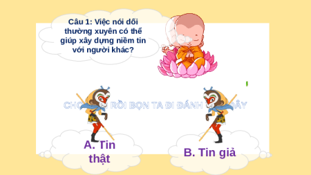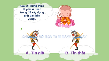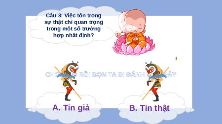 CHỌN SAI RỒI BỌN TA ĐI ĐÁNH TIẾP ĐÂY A. Tin B. Tin giả thật Câu 2: Trung thực là yếu tố quan