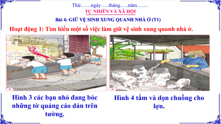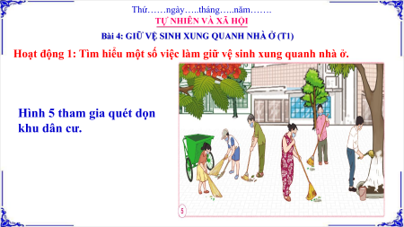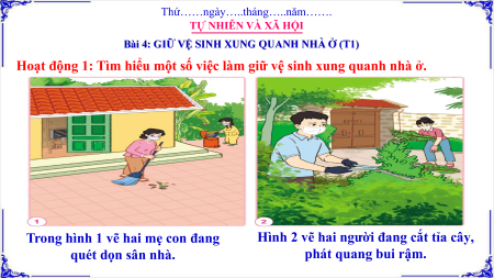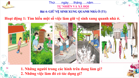 Hoạt động 1: Tìm hiểu một số việc làm giữ vệ sinh xung quanh nhà ở.