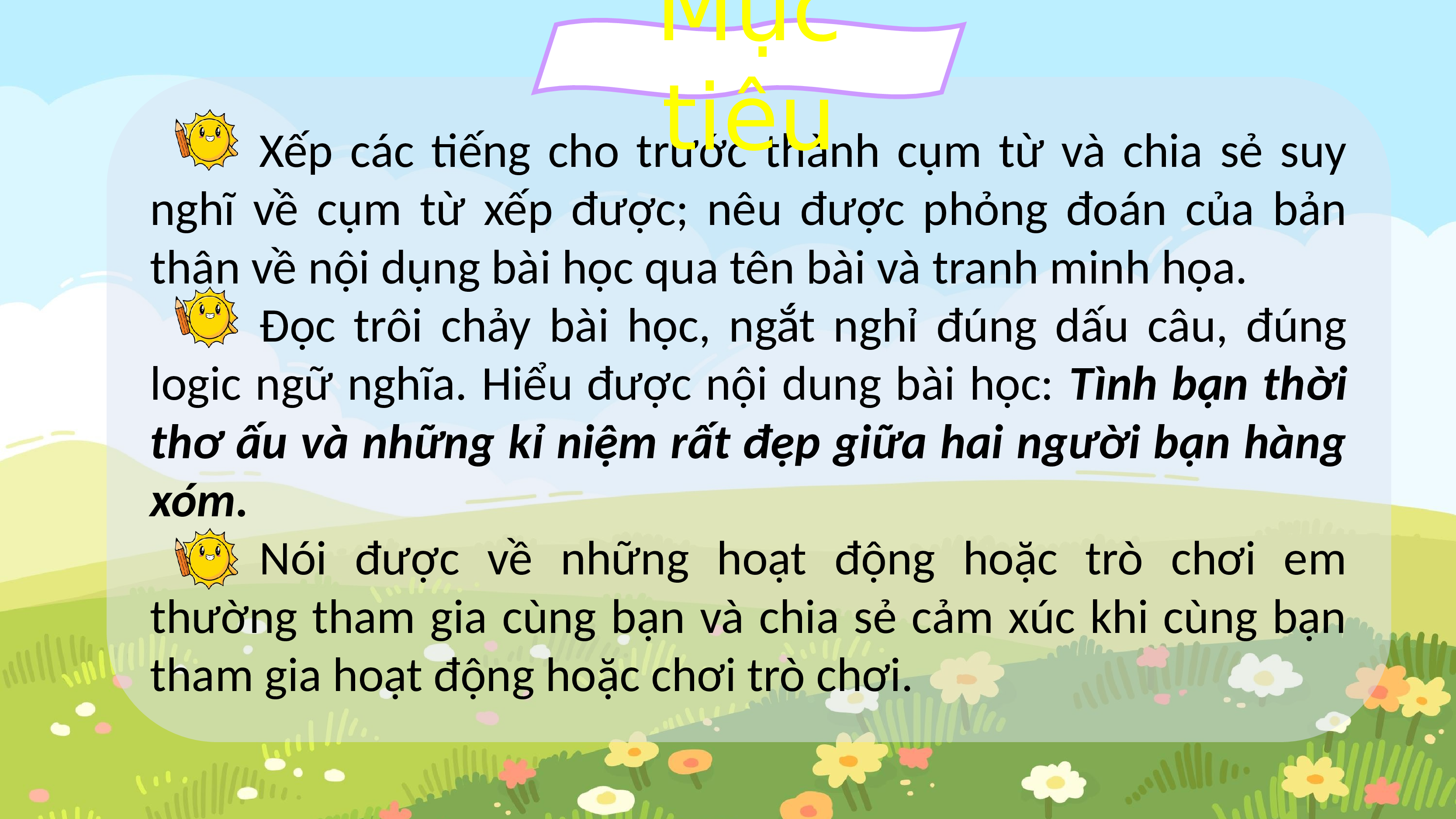 xóm. Nói được về những hoạt động hoặc trò chơi em