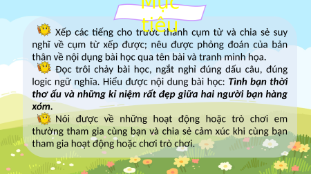 CHỦ ĐỀ: Vòng tay bè bạn Bài 4 – Tiết 1 Hai người bạn Mục tiêu