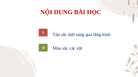 HIỆN TƯỢNG TÁN SẮC ÁNH SÁNG. MÀU SẮC ÁNH SÁNG NỘI DUNG BÀI HỌC I