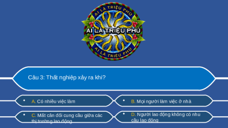 Câu 3: Thất nghiệp xảy ra khi? A. Có nhiều việc làm