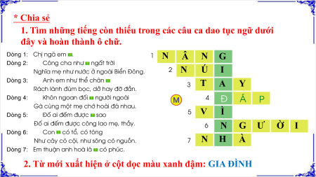2. Từ mới xuất hiện ở cột dọc màu xanh đậm: GIA ĐÌNH