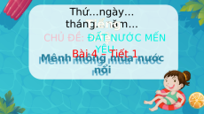 Tiếng V T iệt iếng Việt ĐẤT NƯỚC MẾN ĐẤT NƯỚC MẾN YÊU YÊU Thứ…ngày… tháng T …năm iếng … CHỦ ĐỀ: V Đ iệt ẤT NƯỚC MẾN YÊU Bài 4 – Tiết 1 Mên M h ên hmô n mô g n gmù a mù n a ư n ớ ư c ớc nổi nổi Khởi động Ch C ia h sẻ ia sẻvớ i vớ b i ạ b n ạ nvề vền h n ững h ữngđiề u điề ue m e m th t ấ h y ấ t y ro t ng ro ngả n ả h n hd ướ d i ướ đ i â đ y: ây: