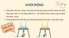 Dùng nhiệt kế đo nhiệt độ của chất lỏng trong hai cốc sau 1 phút đun nóng. Nhận xét và giải thích Nhận xét: