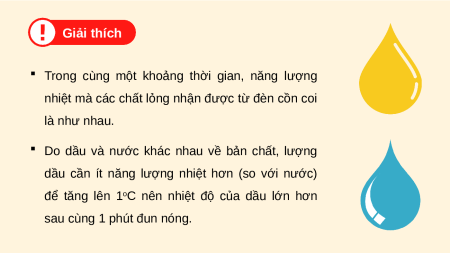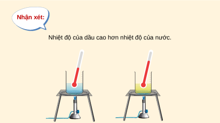 Nhiệt độ của dầu cao hơn nhiệt độ của nước. Giải thích
