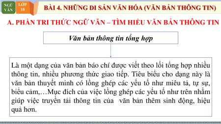 BÀI 4. NHỮNG DI SẢN VĂN HÓA (VĂN BẢN THÔNG TIN) VĂN 10 NGỮ LỚP