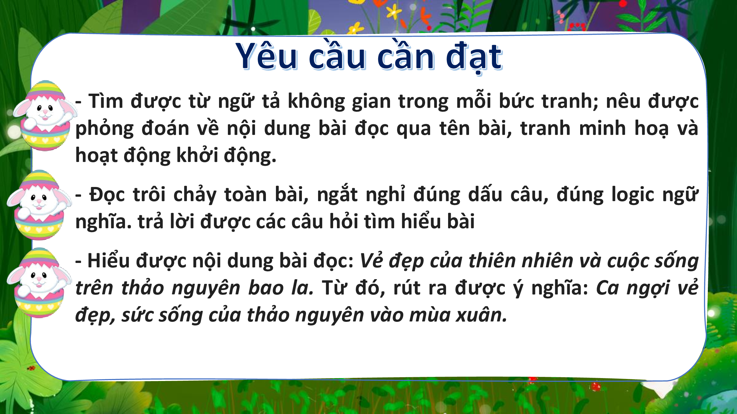 - Hiểu được nội dung bài đọc: Vẻ đẹp của thiên nhiên và cuộc sống