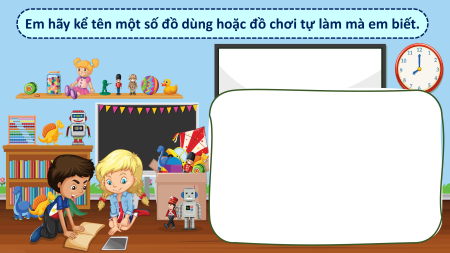 Kể tên được một số đồ dùng hoặc đồ chơi tự làm mà em