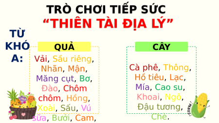- GV đưa ra từ khóa là các loại quả và loài cây của