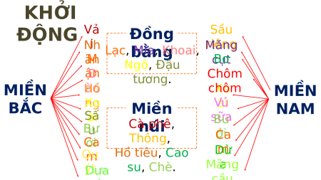 A: Vải, Sầu riêng, Nhãn, Mận, Cà phê, Thông, Măng cụt, Bơ, Hồ tiêu, Lạc, Đào, Chôm Mía, Cao su, chôm, Hồng, Khoai, Ngô, Xoài, Sấu, Vú Đậu tương, sữa, Bưởi, Cam, Chè. Quýt, Dưa hấu, Dừa, Mãng Cầu. KHỞI ĐỘNG Vả Sầu Đồng i Nh riêng Măng Lạc bằng , Mía, Khoai, ãn M cụt Bơ Ngô, Đậu ận Đ Chôm tương. MIỀN ào Hồ Xo chôm MIỀN BẮC ng Xo ài Vú Miền NAM ài Sấ sữa Bư u Bư núi Cà phê, ởi Ca ởi Ca Thông, m m Qu Hồ tiêu, Cao Dừ ýt Dưa su, Chè. a Mãng hấu cầu