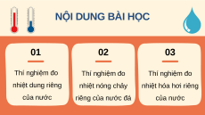 NHIỆT HÓA HƠI RIÊNG NỘI DUNG BÀI HỌC 01 02 03 Thí nghiệm đo Thí nghiệm đo Thí nghiệm đo nhiệt dung riêng nhiệt nóng chảy nhiệt hóa hơi riêng của nước riêng của nước đá của nước