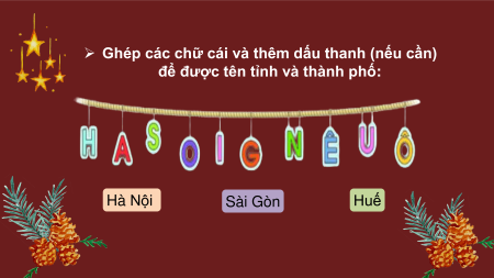 để được tên tỉnh và thành phố: Hà Nội Sài Gòn Huế