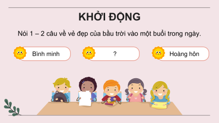 Nói 1 – 2 câu về vẻ đẹp của bầu trời vào một buổi trong ngày. Bình minh ? Hoàng hôn Tâp đọc BÀI 4. TRONG ÁNH BÌNH MINH