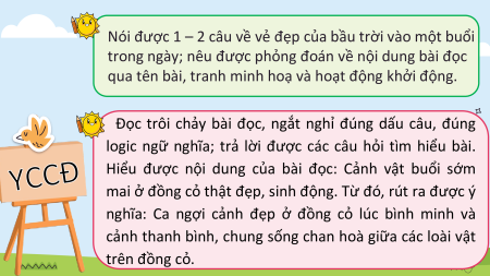 YCCĐ Hiểu được nội dung của bài đọc: Cảnh vật buổi sớm