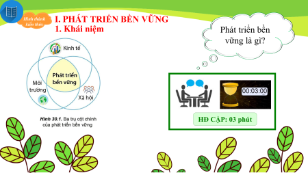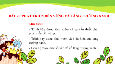 BÀI 30: PHÁT TRIỂN BỀN VỮNG VÀ TĂNG TRƯỞNG XANH Mục tiêu: