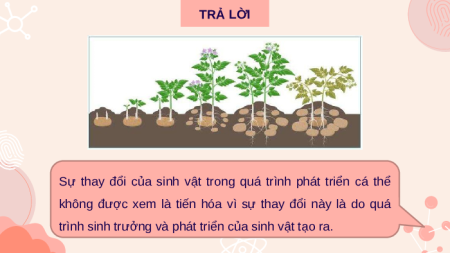 Sự thay đổi của sinh vật trong quá trình phát triển cá thể có