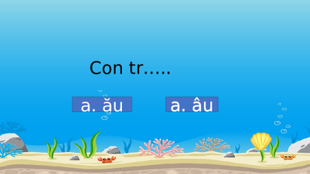 Cùng ôn và khởi động nhé! ? DỌN SẠCH ĐẠI DƯƠNG 2 1 3 r......... củ a. âu b. au