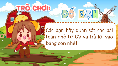 toán nhỏ từ GV và trả lời vào bảng con nhé!