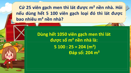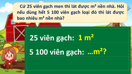 Cứ 25 viên gạch men thì lát được m² nền nhà. Hỏi