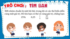 cùng một giá trị. HS tìm bạn có thẻ có cùng giá trị, chẳng hạn: 25% 0,25 1 25 4 100