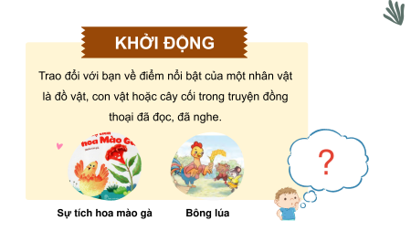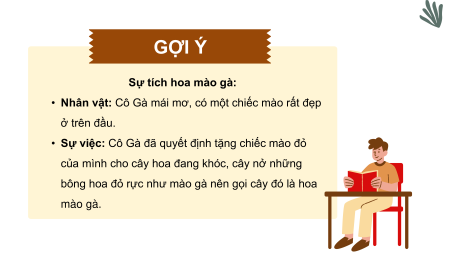 • Nhân vật: Cô Gà mái mơ, có một chiếc mào rất đẹp ở trên đầu.
