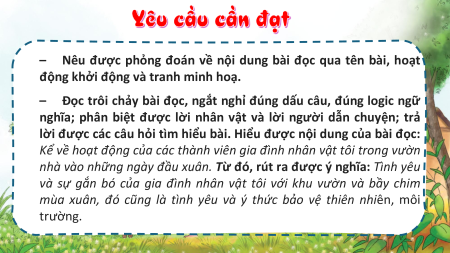 Nêu được phỏng đoán về nội dung bài đọc qua tên bài, hoạt