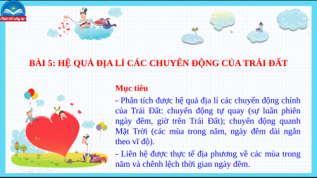 BÀI 5: HỆ QUẢ ĐỊA LÍ CÁC CHUYỂN ĐỘNG CỦA TRÁI ĐẤT