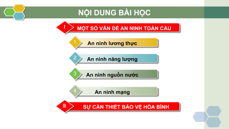 MỘT SỐ VẤN ĐỀ AN NINH TOÀN CẦU 1 An ninh lương thực 2 An ninh năng lượng 3 An ninh nguồn nước 4 An ninh mạng II