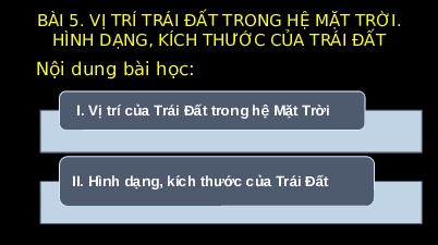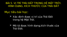 BÀI 5. VỊ TRÍ TRÁI ĐẤT TRONG HỆ MẶT TRỜI.