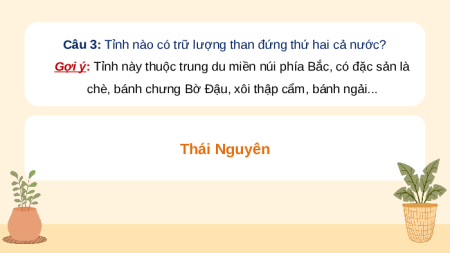 Câu 3: Tỉnh nào có trữ lượng than đứng thứ hai cả nước?
